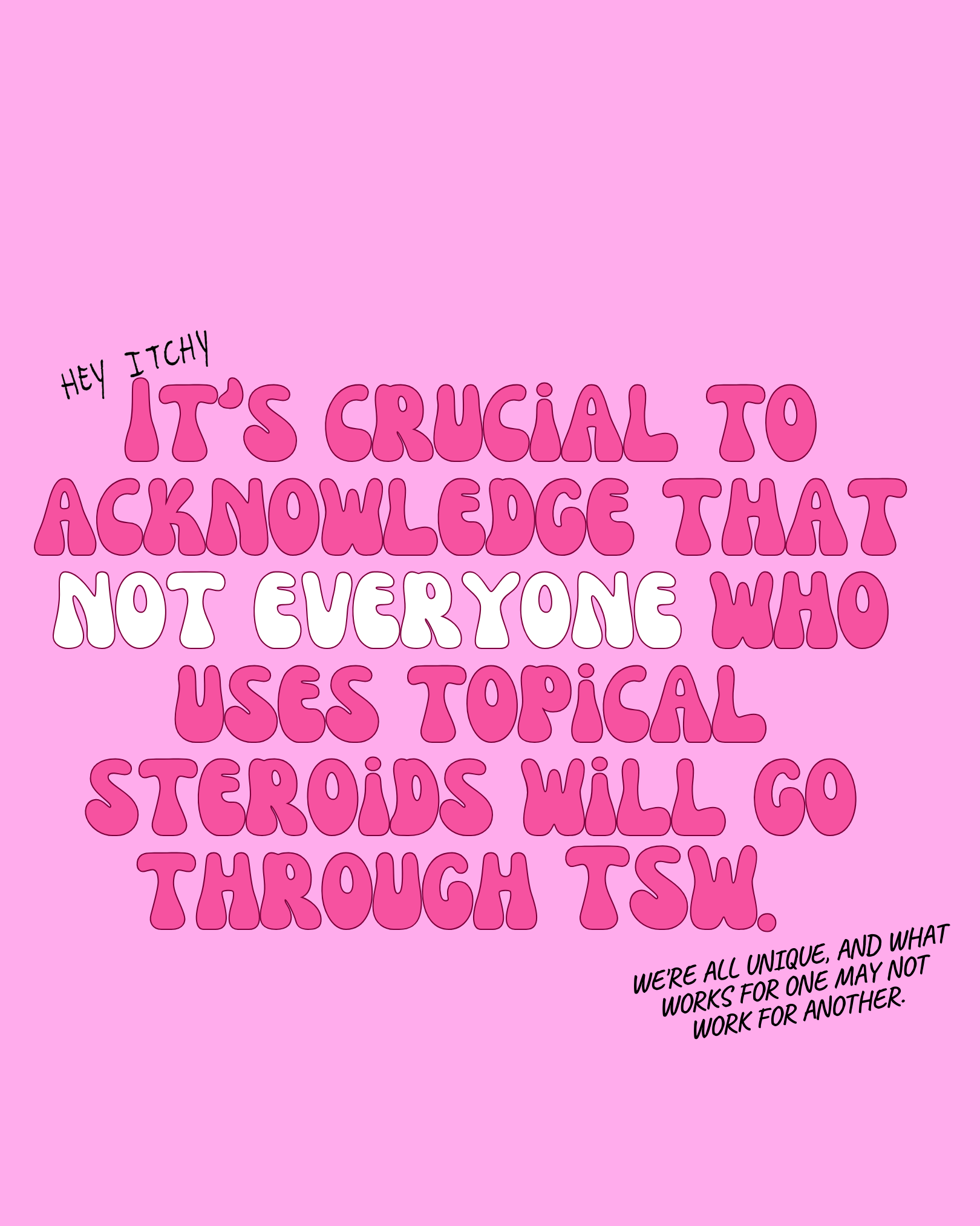 MY MAIN POINTS 🔍It’s crucial to acknowledge that not everyone who uses topical steroids will go through TSW. This is why we need more research on topical steroid withdrawal, not only to support current sufferers but also to prevent potential future cases.